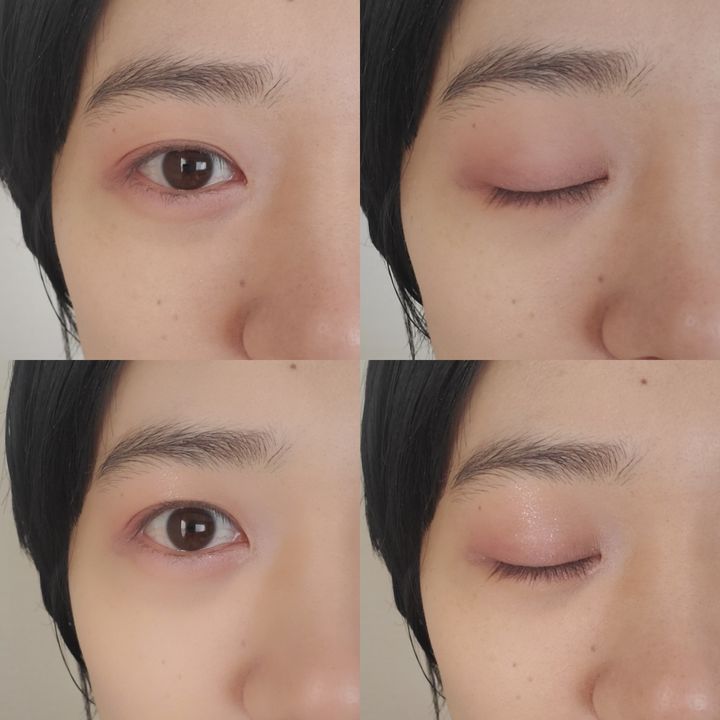 ラメ感も強くなく淡い発色だからでしょうか、下段のラメを重ねると透明感でてまとまり感ある仕上がりに。
