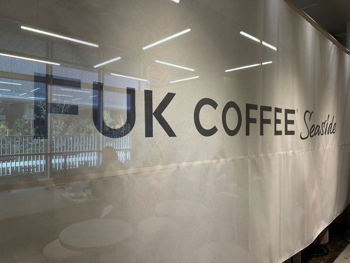 FUK COFFEEは九州を中心に全国展開しているカフェ。福岡県内だけでも4店舗のお店があります。その中で今回私が訪れたのは『FUK COFFEE Seaside』店。その名の通り真横に海がありました。アミューズメント施設『BOSS E・ZO FUKUOKA』内に店舗があるので、施設内で遊んだ後にまったりするのにもってこいのカフェです!