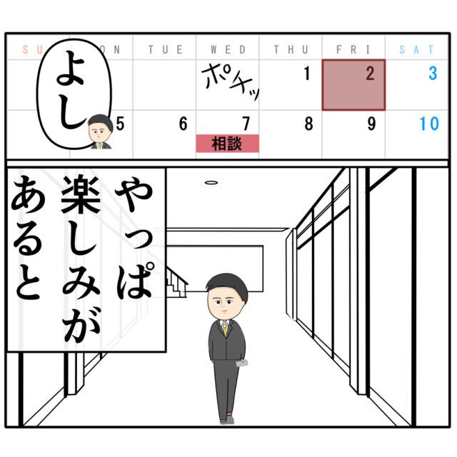ふり子さんとの約束の日をカレンダーに登録して気合いを入れる良し男さん。