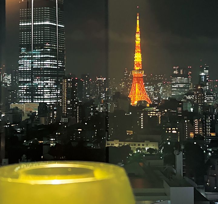 エレベーターホールから見る東京タワーは、何にも遮られることなく光り輝いていた。部屋から眺められる客室もある