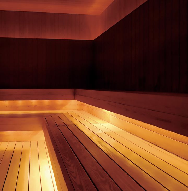「Nagomi スパ アンド フィットネス」では、男女ともに更衣室にサウナと水風呂を用意。サウナ内は暗めで落ち着く