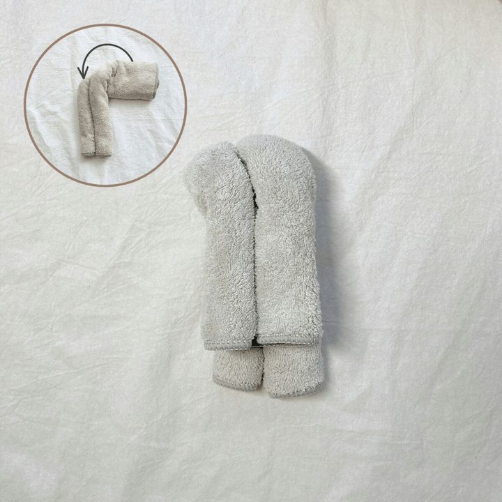 下側に折り込んでいたタオルを、今度は上側に乗せて重なるようにします。