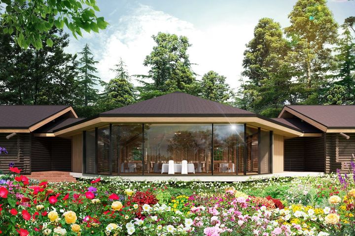 例えば花々が咲き誇るフラワーガーデンで挙式を行い、コテージから庭を眺めつつパーティを。全面ガラス張りで180度以上のパノラマビューが圧巻です。