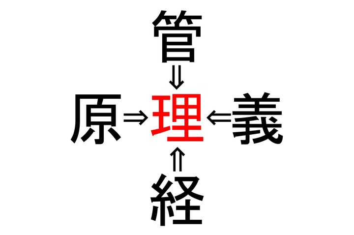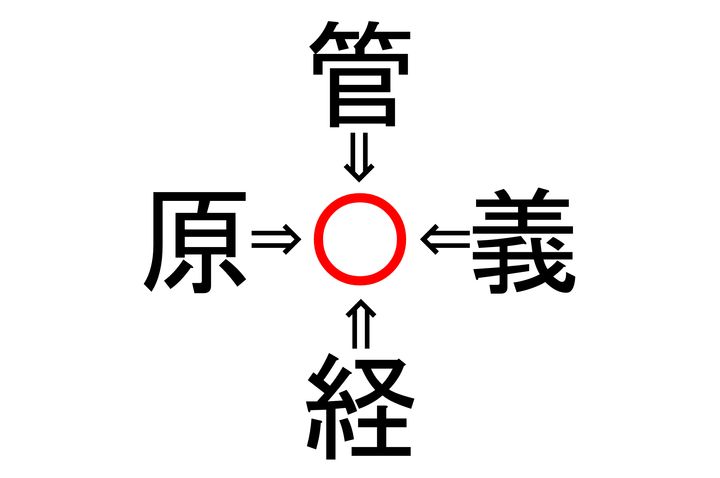 管〇・義〇・経〇・原〇。 4つの〇に入る漢字は共通しており、それぞれ熟語を形成します。