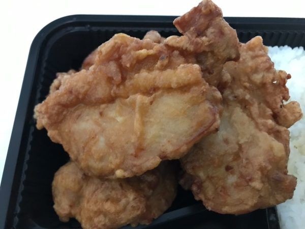 醤油からあげ弁当を食べてみました。注文してからからあげを揚げてくれるので出来立てをいただくことができます。パックから溢れてしまうほどの大きな醤油からあげが、4つ入っていました。