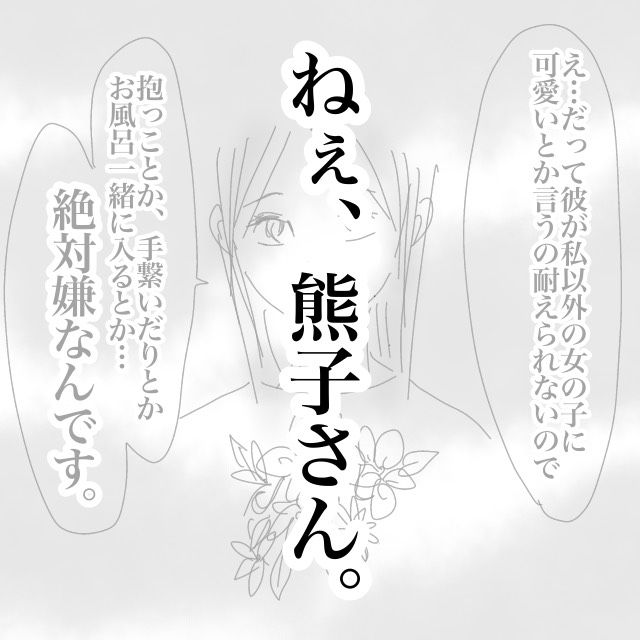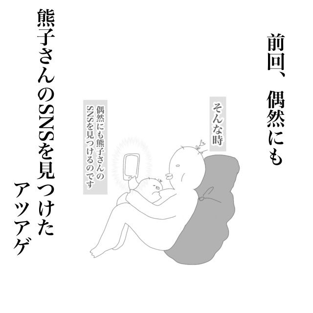 熊子さんの異常なまでの彼への執着を知りドン引きした店長と若き日のアツアゲさん。強烈なインパクトはあったものの、その後は次第に熊子さんのことも忘れ、転職、ご主人との出会い、結婚、出産・・・と月日が流れていったある日、偶然SNSで熊子さんを見つけて・・・。