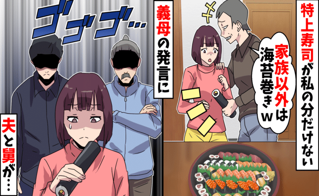 「家族以外はのり巻き」高級寿司を注文していた義母⇒「家族の分だけ特上」すると夫と舅が立ち上がり
