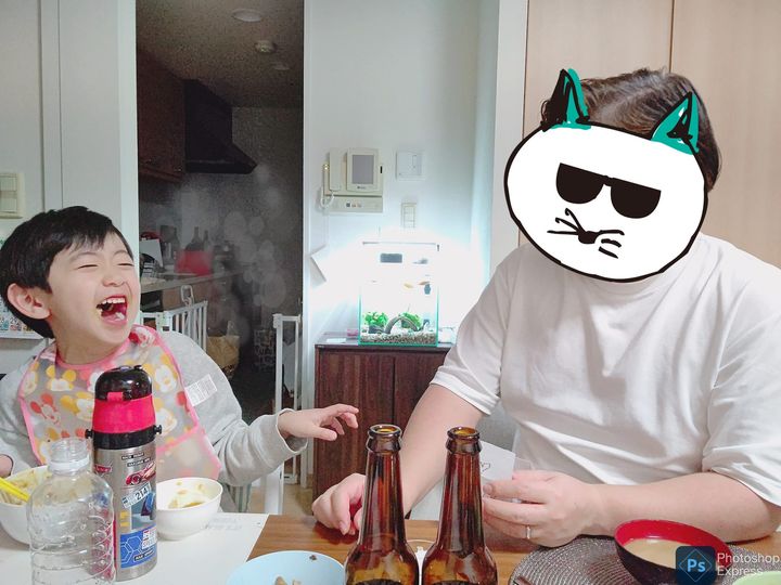 さて、珍しく早く帰って来て一緒に夜ご飯を食べる事が出来たパパ。