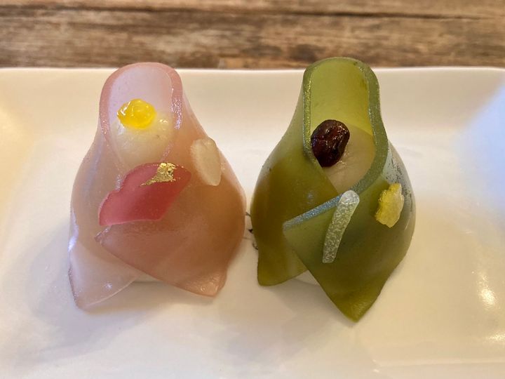 中にはこし餡が入っていて、周りにゼリーの飾りで装飾されています。