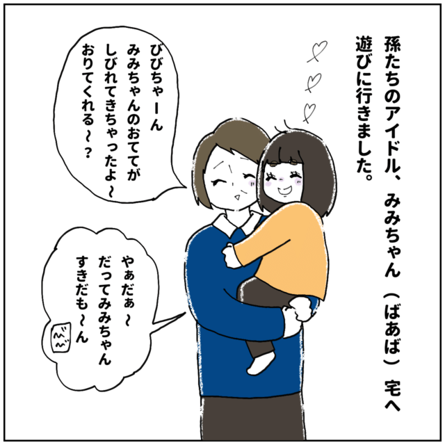 長女ぽぽちゃん、次女びびちゃん、長男ももくんの3人きょうだいのママであるあずきなこさんから、ぽぽちゃん、びびちゃんのアイドル!ばあばのみみちゃん宅に遊びに行った時のお話が届きました。みみちゃんとどんなお話をしたのでしょうか?