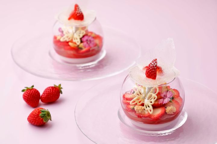 南紀白浜マリオットホテルでは、和歌山県産オリジナル品種の苺を贅沢に使用した特製パフェ「まりひめとみかん蜂蜜のホワイトショコラパフェ」を発売します。和歌山県内でしか生産されていない希少な苺「まりひめ」をふんだんに使い、春の苺畑をイメージしているそうです。