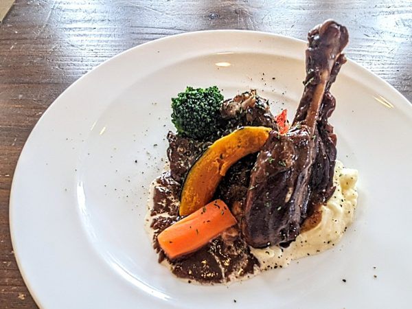 ★選べるメイン 骨付き鴨モモ肉の赤ワイン味噌煮込み なんて豪華! ほろほろの鴨肉はしっかりと味が染み込んでいて美味しい〜。ボリュームたっぷりでもローカロリーで背徳感なしw お野菜とマッシュポテトにも濃厚ソースを絡ませてペロリと完食。