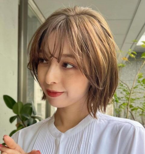 透け感のある前髪でおでこをカバーしつつ、毛先に動きを出すことで全体のバランスが整えましょう。