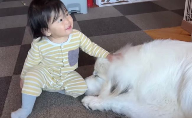 28万回再生「そおーっ♡」わんこにどうしても触りたい赤ちゃん→わんこがとった健気な対応とは?