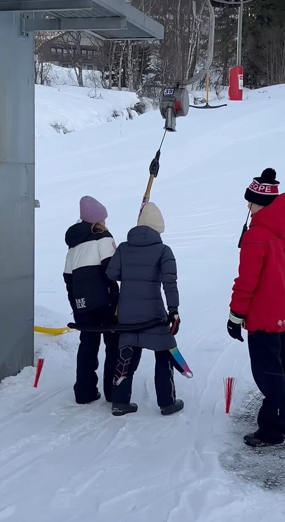 ゲレンデの上にいる友達のもとへ向かうために、リフトに乗る子供たち。 しかし、その足元にはスキー板がありません!?