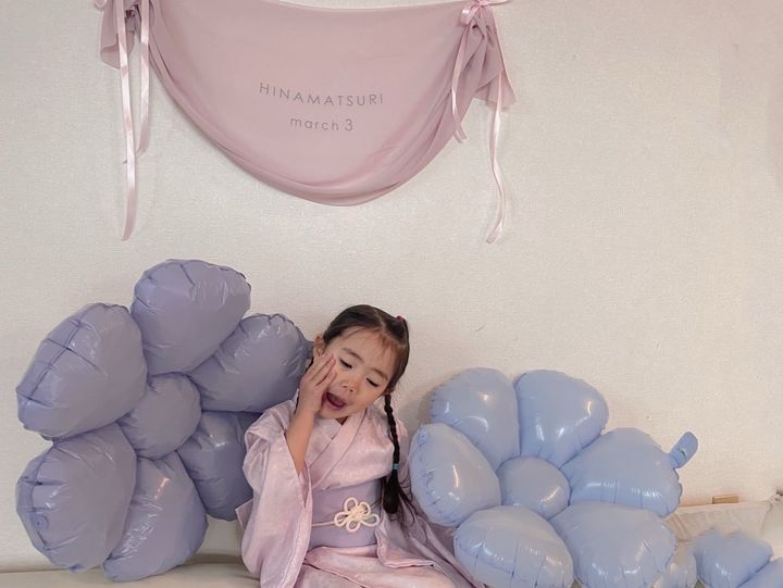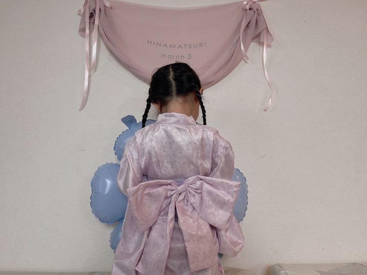 私は店舗で、かわいすぎるピンクのお着物とドレープがかわいいタペストリー、フラワーバルーンをGETしてきました!