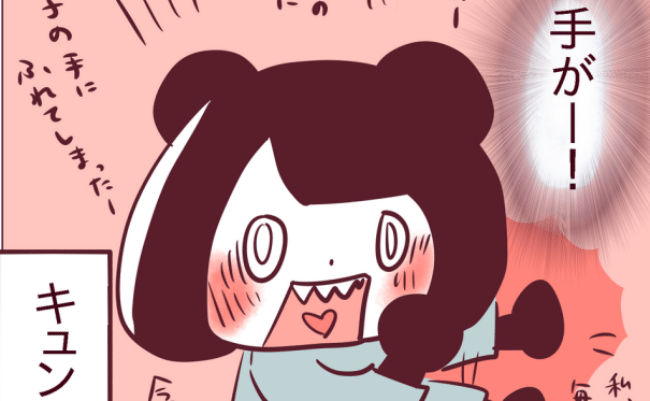とものりくんの手に触れたメルコさんは、うれしさからパニックに! ハグやキスではなく、とものりくんが控え目に触れたのは、異性との交際が初めてのメルコさんを気づかってのことかもしれませんね。