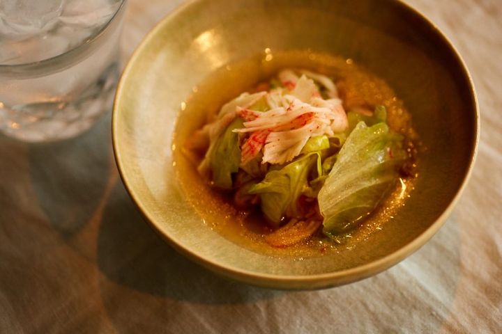 簡単なのにおいしい、そしてちょっと粋で気が利いている。そんなレシピが人気の料理家・長谷川あかりさんに、疲れていても「いち・にの・さん」でパパッと作れるおつまみを教えてもらう連載。今回は、出汁までおいしい「かにかまとレタスの出汁浸し 柚子胡椒風味」です。