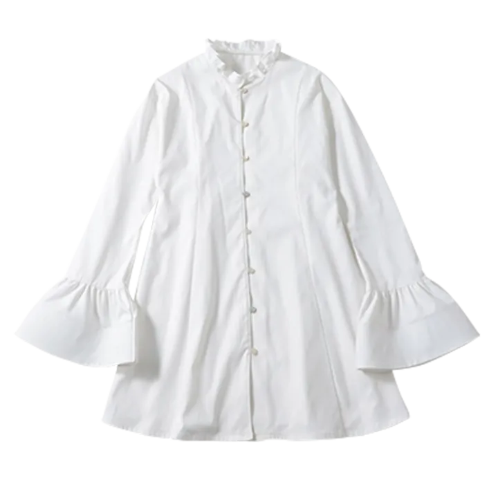 甘いディテールにキュン♡ シンプルだけどしっかり映えるベルスリーブで印象的に。