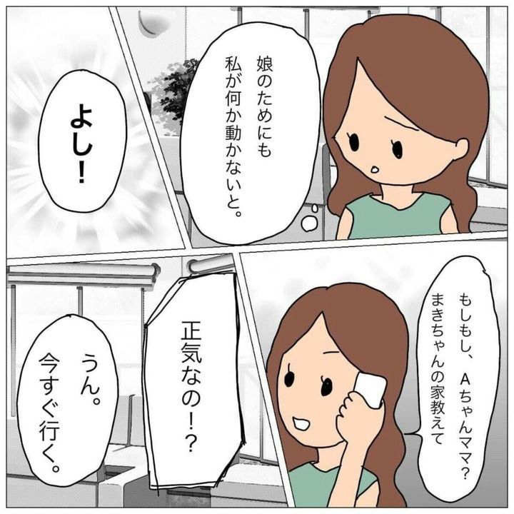 娘のためにと、自らまきちゃんの家へ直談判に行こうとするママでした。子どもの同士のトラブルは、ある程度まで子どもたち自身に任せる場面も必要です。