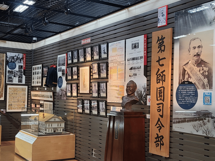 軍服や軍刀など、館内のいたるところに「第七師団」に関連する展示物があり、無料で見学することができます。