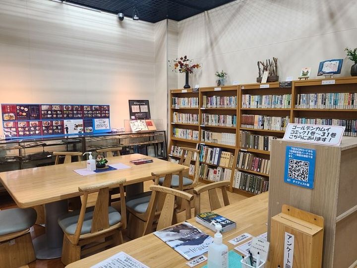館内のフリースペースには、第七師団に関する資料がいっぱい。『ゴールデンカムイ』の漫画も全巻置いてありました!