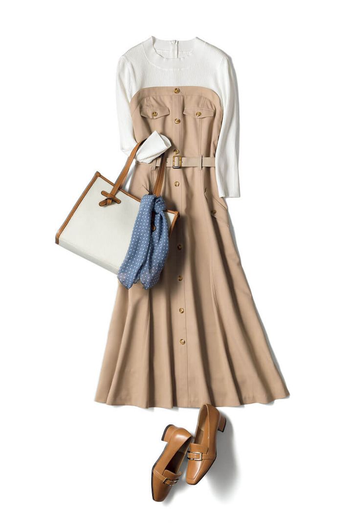 [バッグは使い回し]ドッキングワンピース¥31,900/レッセ・パッセ スカーフ¥4,400/RESEXXY 靴¥15,950/ダイアナ(ダイアナ 銀座本店)