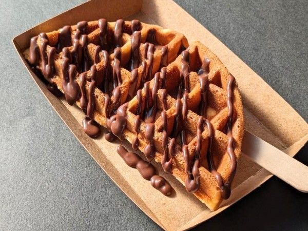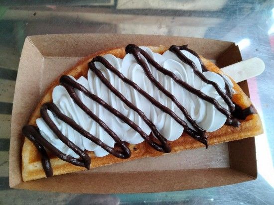米粉100%で作ったワッフル屋さんでした。最初に目についたのはチョコバナナクリームのワッフル‼