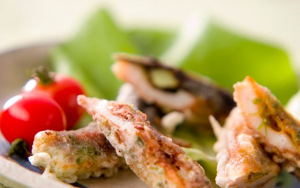 縦半分に切ったちくわに、豆板醤入りの合わせみそやカツオ梅などを塗ります。そのままでも十分美味しいのですが、青のりを混ぜた衣にくぐらせてカリッと揚げていただきます。衣がゆるすぎるとちくわにうまく付かないので、水の量を調整してくださいね。