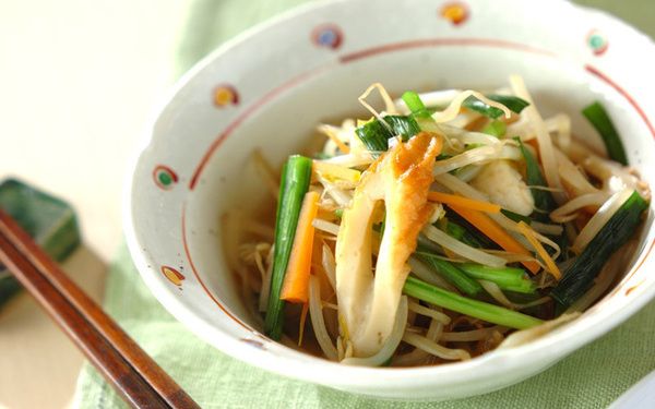 モヤシやニンジンなどの炒め煮は、あっさり味が特徴。少し物足りないときは、ちくわをプラスするのがイチオシです。野菜を炒めてから煮るため、短時間で火が通ります。ちくわの旨みが全体にしみて絶品。出来上がったらそのまま冷まして味を含ませると良いです。