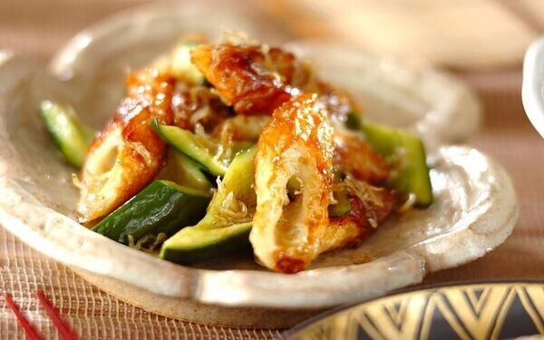 すりおろしたキュウリと大根をたっぷり和える、さっぱり味の一品です。味付けは酢じょうゆ、砂糖、レモン汁で食欲がかき立てられますよ。ちくわは油を引かずにフライパンで表面をカリッと焼いて香ばしさをアップさせましょう。