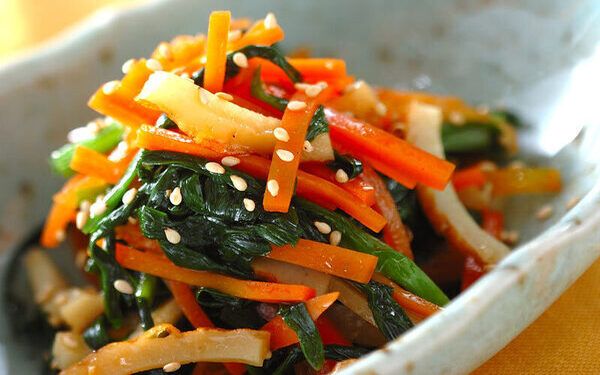 薄味のだしで煮たニンジンとちくわを、卵でとじます。ホウレン草も入っているので、色鮮やか。だしがしみた具材と半熟卵を一緒に食べれば、やさしい味わいに笑みがこぼれます。ごはんにのせるアレンジもおすすめ。