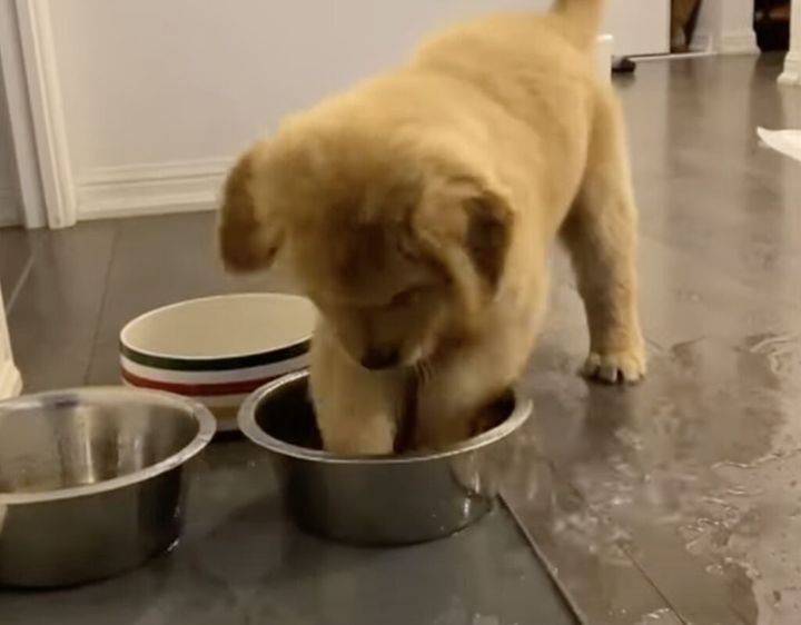 子犬「全部出したら、何かでてくるかも!」ボウルからお水をかき出しちゃって