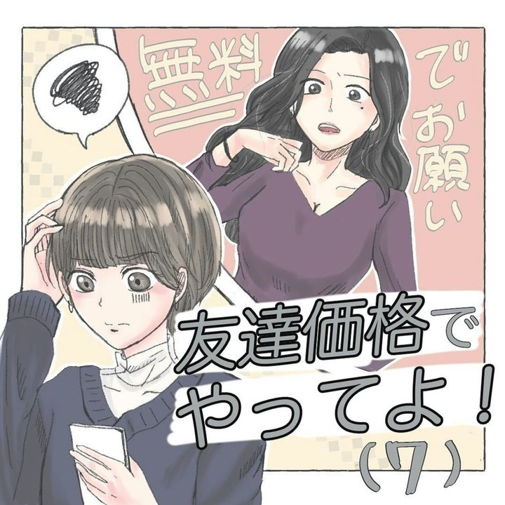 この物語は、美容師として働く和泉 スゥ(@izumi_suu)さんの体験です。安い料金で美容師のプロ技術を要求する「友達」に悩んでいたスゥさん。親友マリコさんの言葉を受け、技術への対価について考えます。友達の施術はトラウマになってしまったが、親友の頼みを断れませんでした。『友達価格でやってよ!』7話をごらんください。