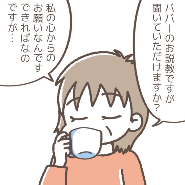 「ババーのお説教ですが聞いていただけますか?私の心からのお願いなんです。できれば、なのですが・・」