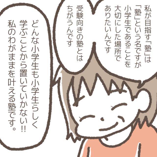 「私が目指す『塾』は、『塾』という名ですが、小学生であることを大切にした場所でありたいんです。受験向きの塾とは違うんです。