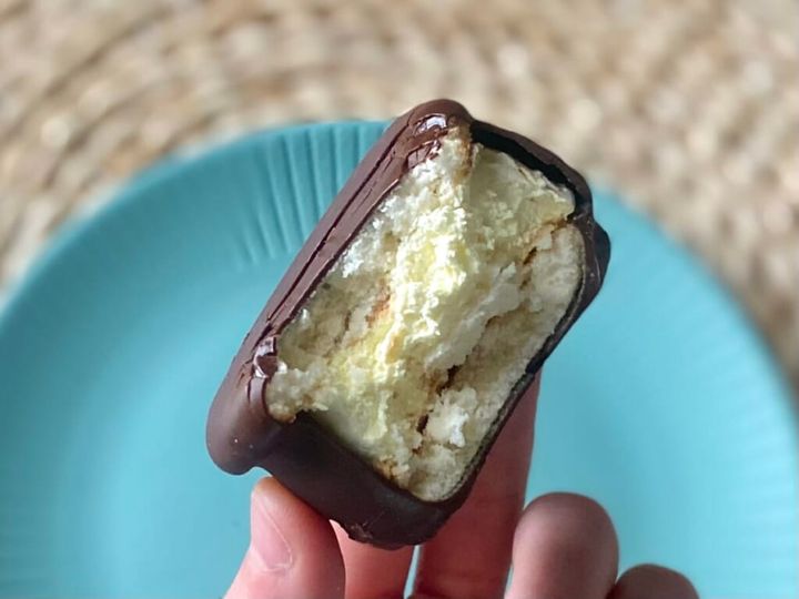 期間限定で登場中の新作は、ニューヨークチーズケーキ味。クリームチーズを使用したしっとりふんわり食感のチーズケーキで、チーズの入ったコクのあるクリームをたっぷりサンド。さらに、チョコレートで包み込んでいます。
