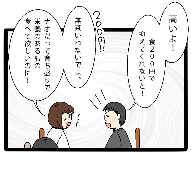 「200円!?無茶言わないでよ。ナオだって育ちざかりで、栄養のあるもの食べて欲しいのに!」
