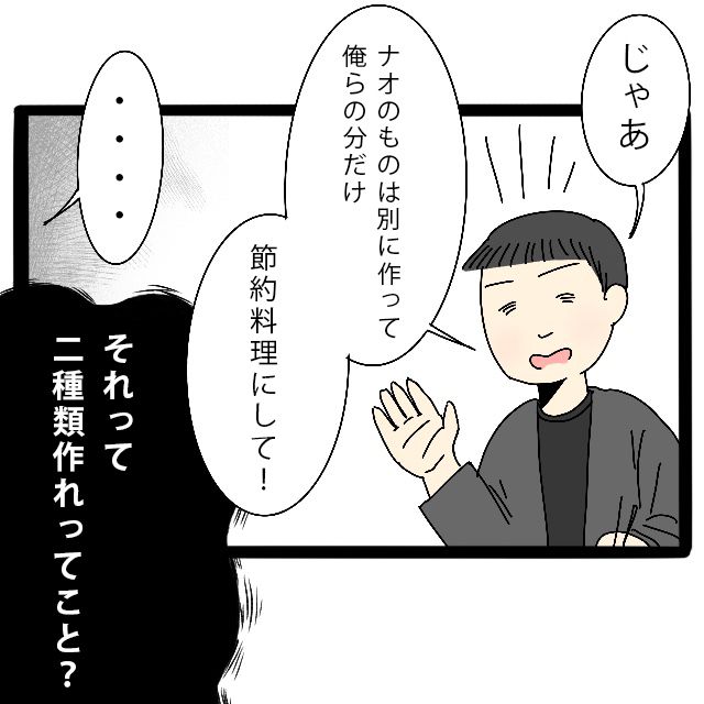 「かあ、ナオのものは別に作って、俺らの分だけ節約料理にして!」