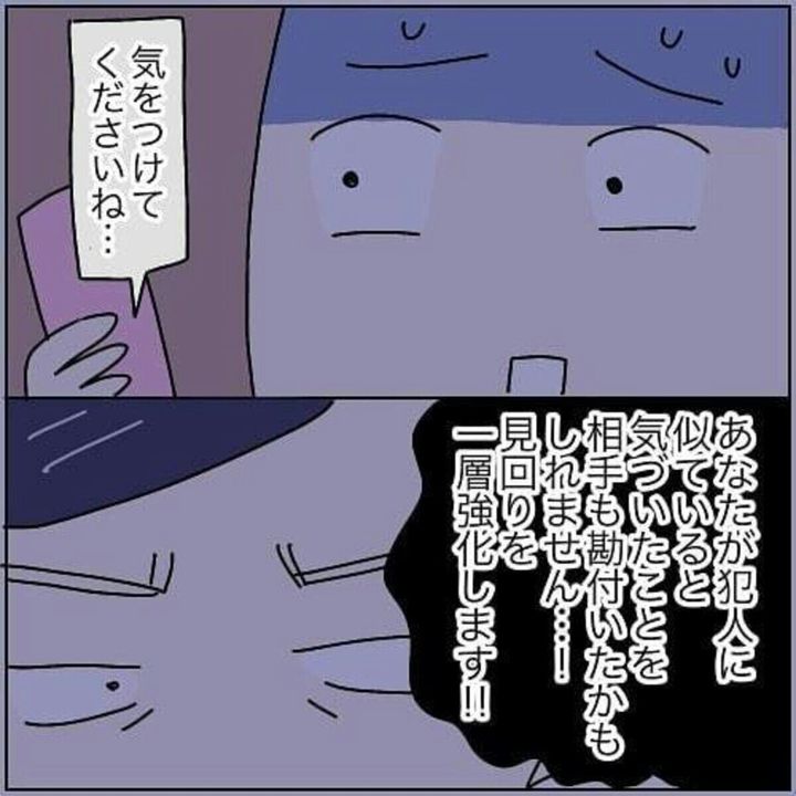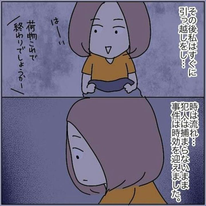 刑事さんからの電話で、新たな事実を知ることになりました。そして「相手も勘づいたかも」と言われたら、一刻も早く引っ越しをしたいですね…。時は流れ、事件は思わぬ形で終息します。