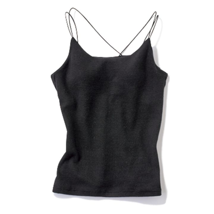 シャツやトレンドのシアートップスの日のインナーに。細い肩紐とバッククロスのディテールで洒落感もばっちり。¥16,500(ヤヌーク/カイタックインターナショナル)