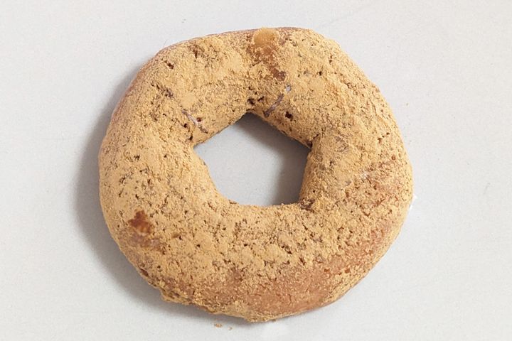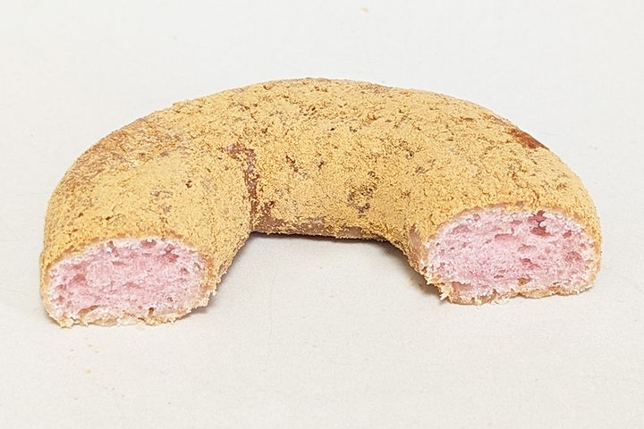 桜もち風味のもちっとした生地がベースになっていて、きなこがまぶされています。ミスタードーナツにはこのドーナツ以外にもきなこがまぶされているものがあるのですが、こちらはきなこの色が濃いんです! しかも食べてみると、とても香ばしくてなんだか高級感のある味わい。なぜなら、国内産大豆100%を使用したきなこがトッピングされているから! 桜風味の生地とあわさって、まるで和菓子のよう。筆者はきなこ好きなので、このドーナツがイチオシです!