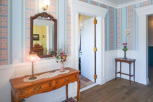 壁紙が可愛い玄関ホールの左右には、2つの見どころがあります。