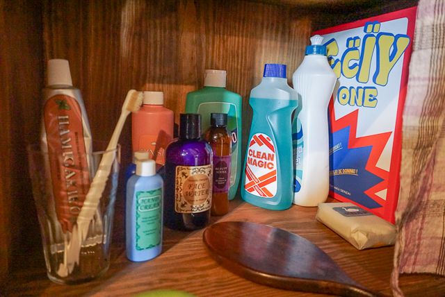 物は決して多くありません。最低限の物に囲まれて生活している様子が伝わってきますが、一つひとつのデザインはカラフルで可愛いですね。