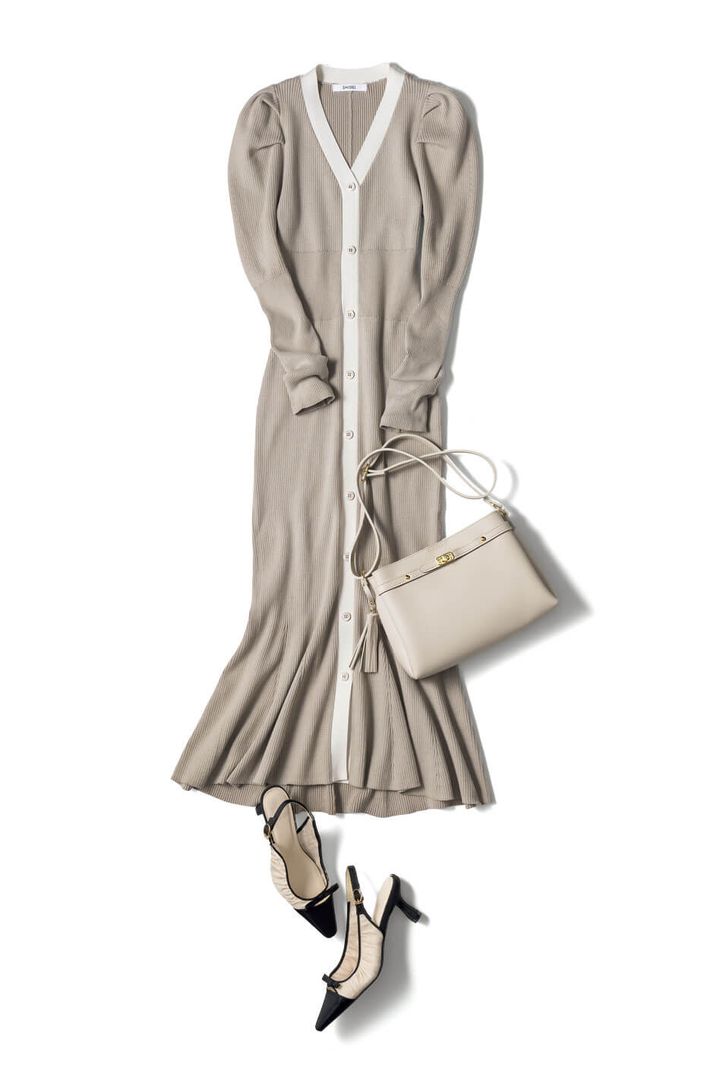 オフィスにいるときよりも、ちょっとくつろぎたい気持ちに寄り添うのがニットワンピ。締めつけがなく着心地ラクチン&可愛げもありつつ力の抜けたコーデが叶うので、カフェでは浮かずデートウケも上々と言うことナシ!
