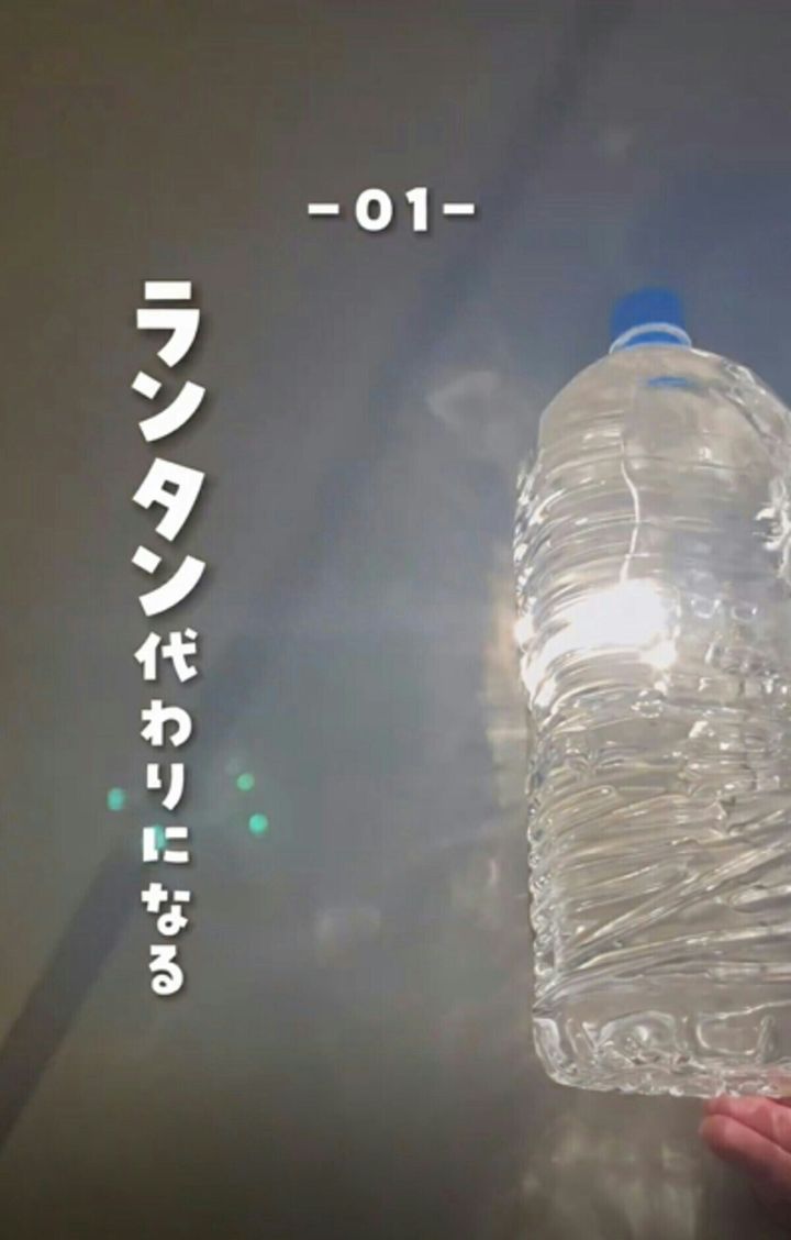 ライトを付けたスマートフォンの上にペットボトルを置くと、ランタンの代わりになります。