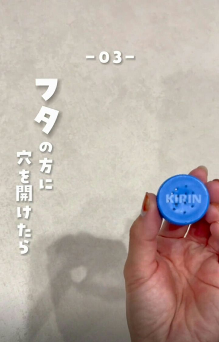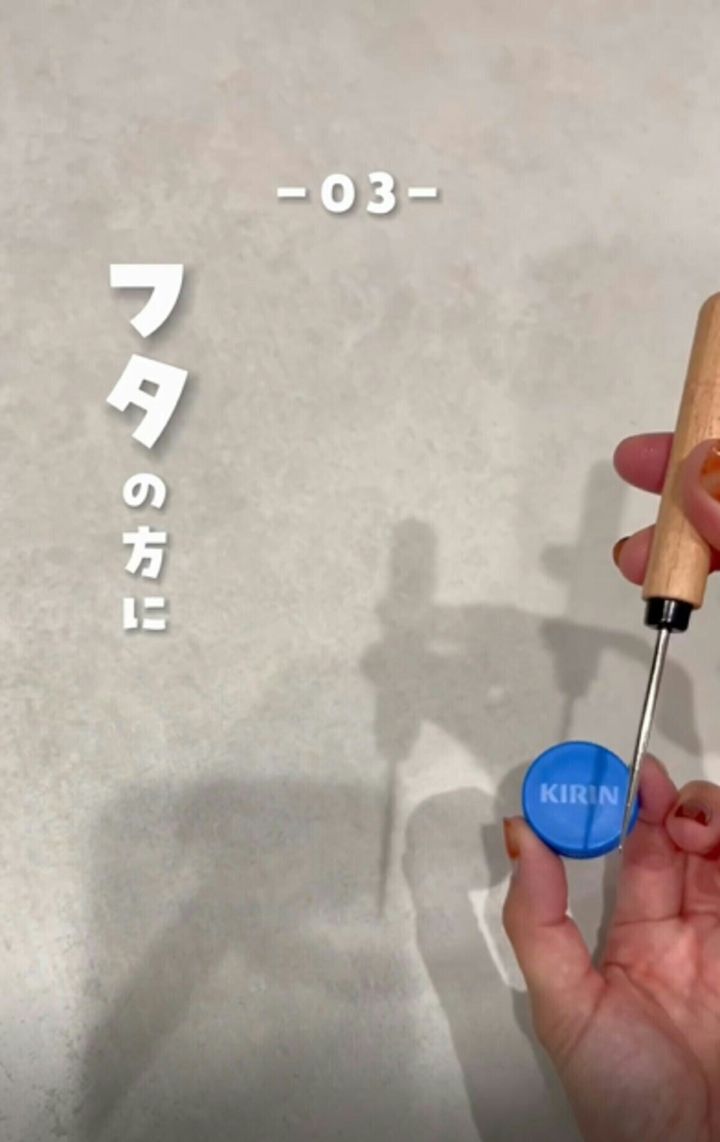 次はペットボトルではなく、キャップの方に穴を開けます。