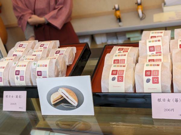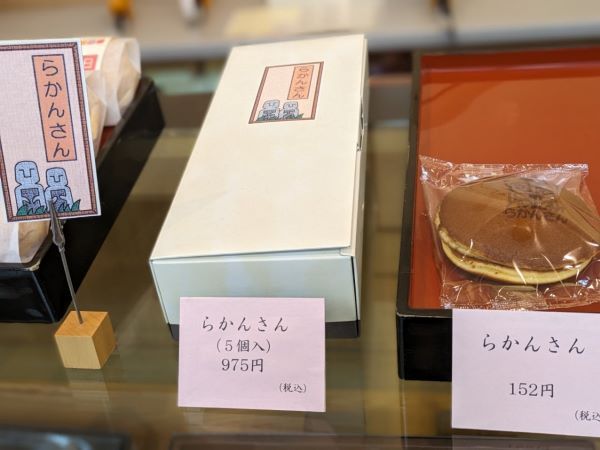 おいしそうなお菓子が沢山ある中で、とっても気になったのが「らかんさん」という名前のどら焼き。可愛らしい焼印は、県指定文化財の北条の五百羅漢石仏を象った焼印入りです。(五百羅漢については次の回で詳しく♪)