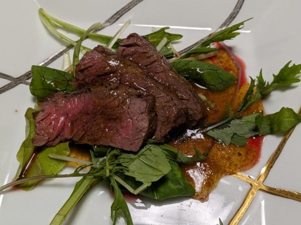国産黒毛和牛種A5ランクを使用したという「ハラミステーキ」は上質なお肉の味もさることながら、さっぱりとした後味がお肉と良く合うソースも絶品!
