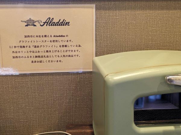 そして朝はどちらかというとお米派の私なのですが、こちらを見て「パン」に決めたのですが、理由はおわかりですか?実はここ加西市は、太平洋戦争終戦後の1947年から製造業の事業所が創業して以来、独自の企業が育ち、多種多様なものづくりが可能になりました。その一つが、家電で有名な「アラジン」。特に「アラジン グラファイトトースター」はふるさと納税のデイリー家電ランキングで1位を何度も獲得したことのある商品です。